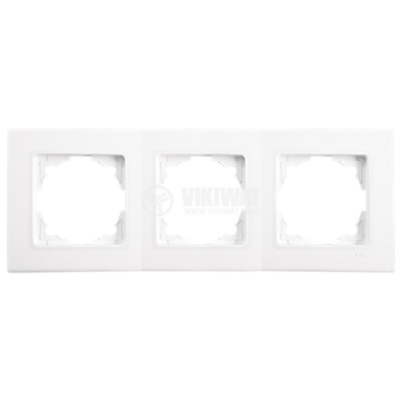 3-gang decorative frame in white color for power wall sockets and wall light switches Linnera life, Viko by Panasonic. This frame can be easily combined with electrical sockets and switches in different colors from the same serie. 91480003