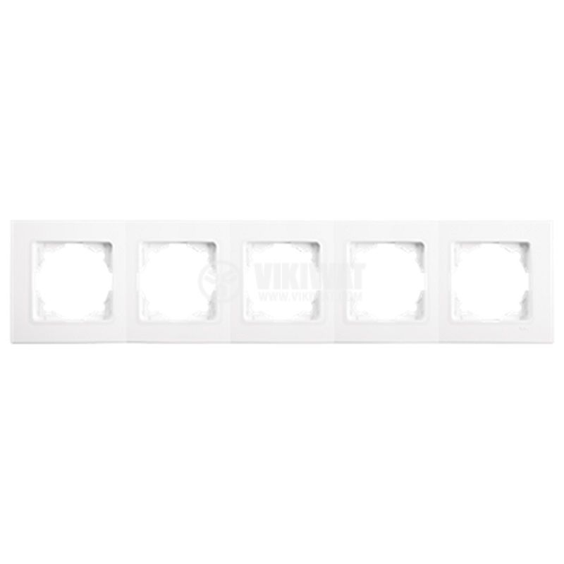 5-gang decorative frame in white color for power wall sockets and wall light switches Linnera life, Viko by Panasonic. This frame can be easily combined with electrical sockets and switches in different colors from the same serie. 91480005