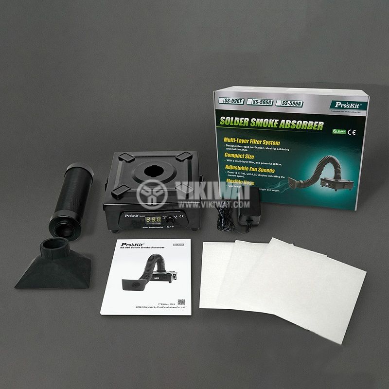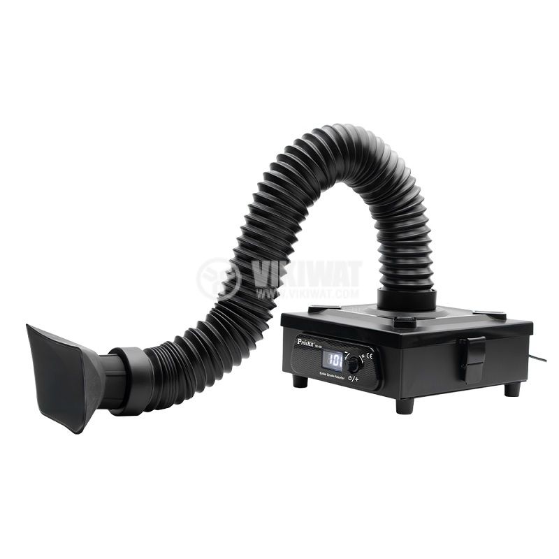 Абсорбатор предназначен за отстраяване на вредните изпарения при запояване на електронни елементи. Захранващо напрежение 100-240 VAC, 15W мощност, като може и да се регулира.