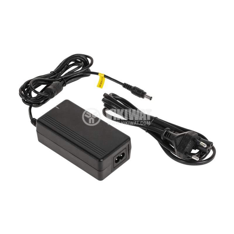Адаптер за захранване на консуматори с работно напрежение 12 VDC. Захранващо напрежение на адаптера 100~240 VAC с размери на конектора 5.5 х 2.5 mm.