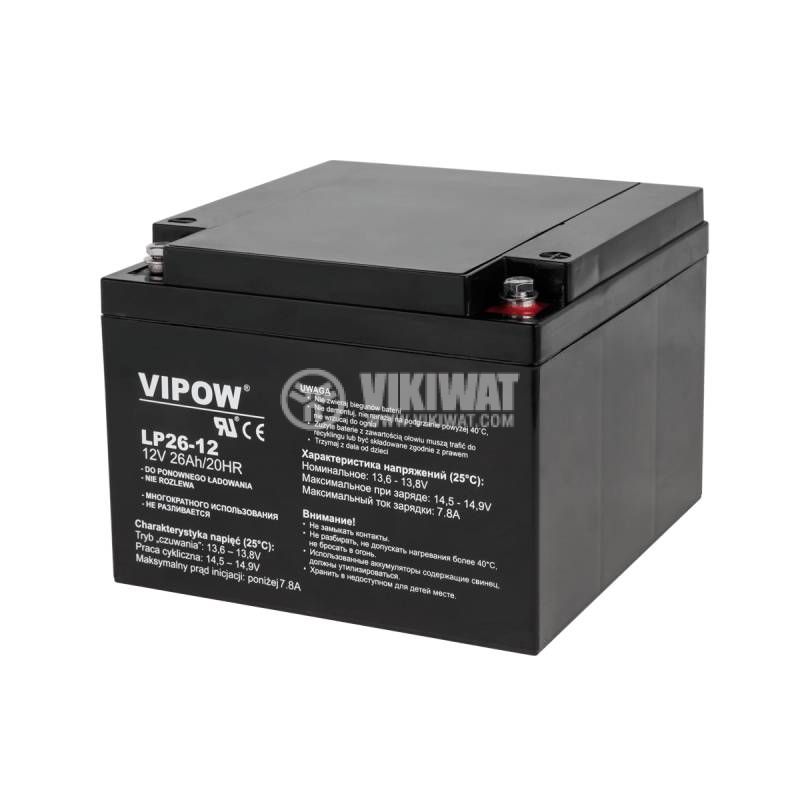 Тягов акумулатор BAT0270 с номинално напрежение 12 VDC и капацитет 26 Ah. Едно от най-големите предимства на гел батериите е тяхната дълготрайност. От всички батерии, предлагани на пазара, този тип се отличава с най-дълъг живот.