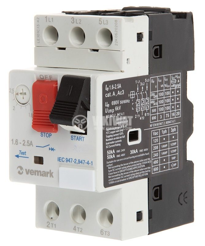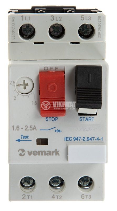 Пускател за стартиране на монофазни ел. двигатели, VCX2-25, 220VAC, 25A, бобина 220 VAC, защита 17-25А