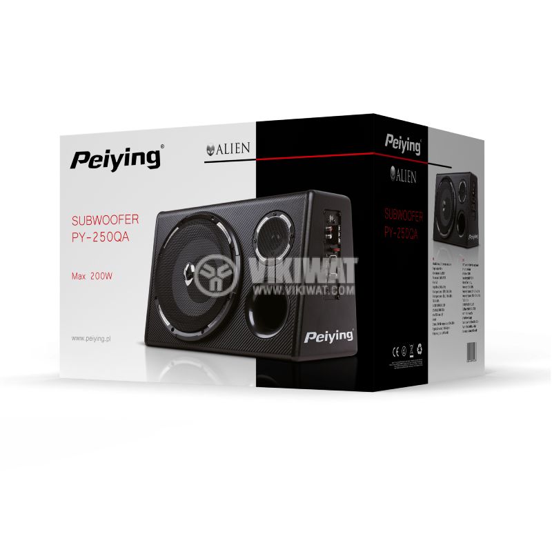 Активният субуфер PY250QA е идеалното решение за аудио ентусиасти, търсещи дълбок и мощен бас. Оборудван с 10-инчов басов говорител и вграден усилвател, той предлага впечатляващите 200 W пикова мощност и чувствителност от 86 dB при 1 W / 1 M, осигурявайки пълноценно и динамично изживяване при слушане.
