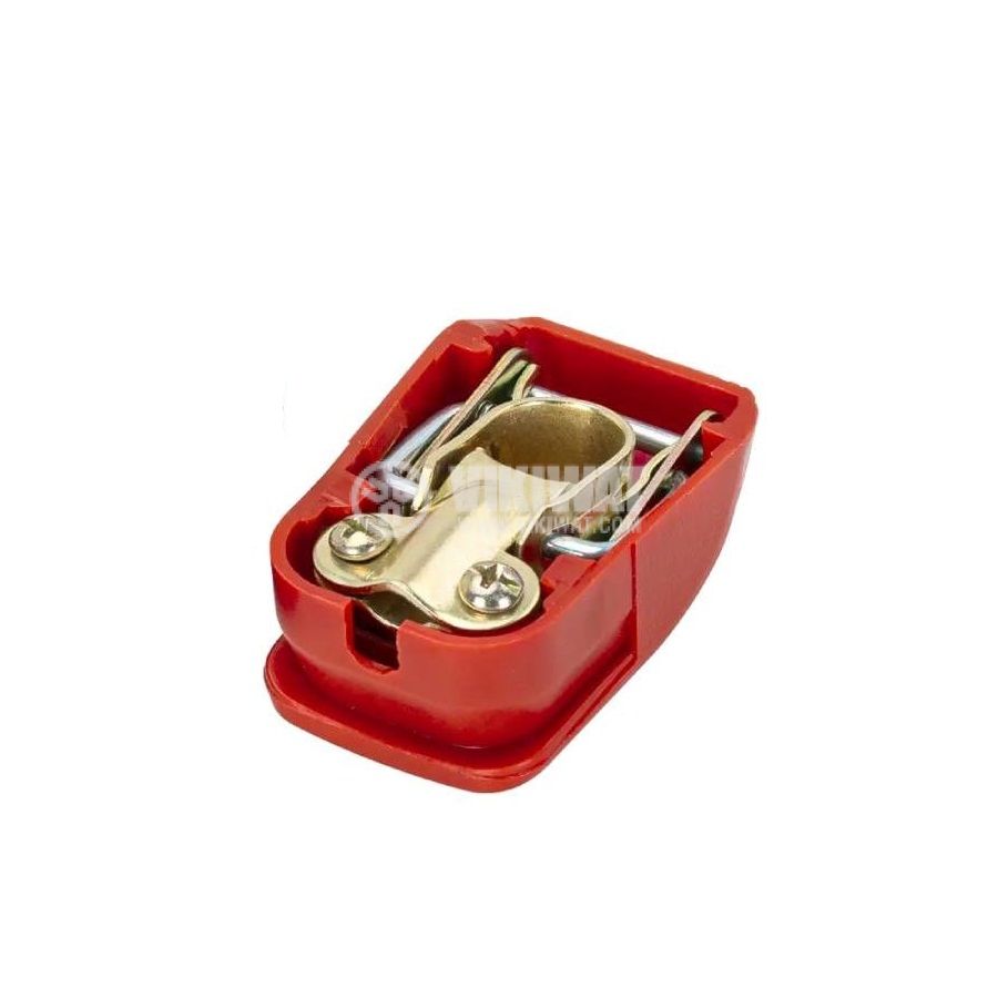 Set of automatic, automotive battery terminals, with spring clamp, with hole diameter ф 17 ~ 18 mm, made of brass, voltage 12 VDC, with ABS caps in blue and red.
