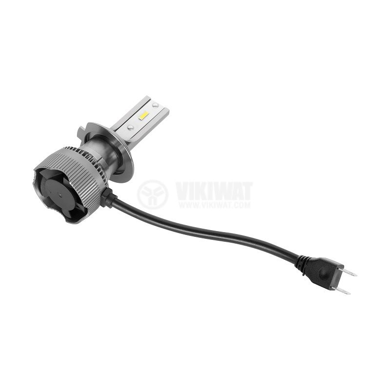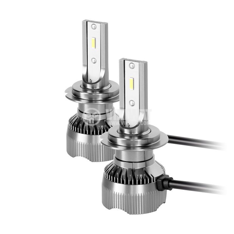 A set of LED car bulbs H7, in cold white light, with a power of 25W, suitable for headlights, by direct connection to the installation. The kit contains two bulbs.