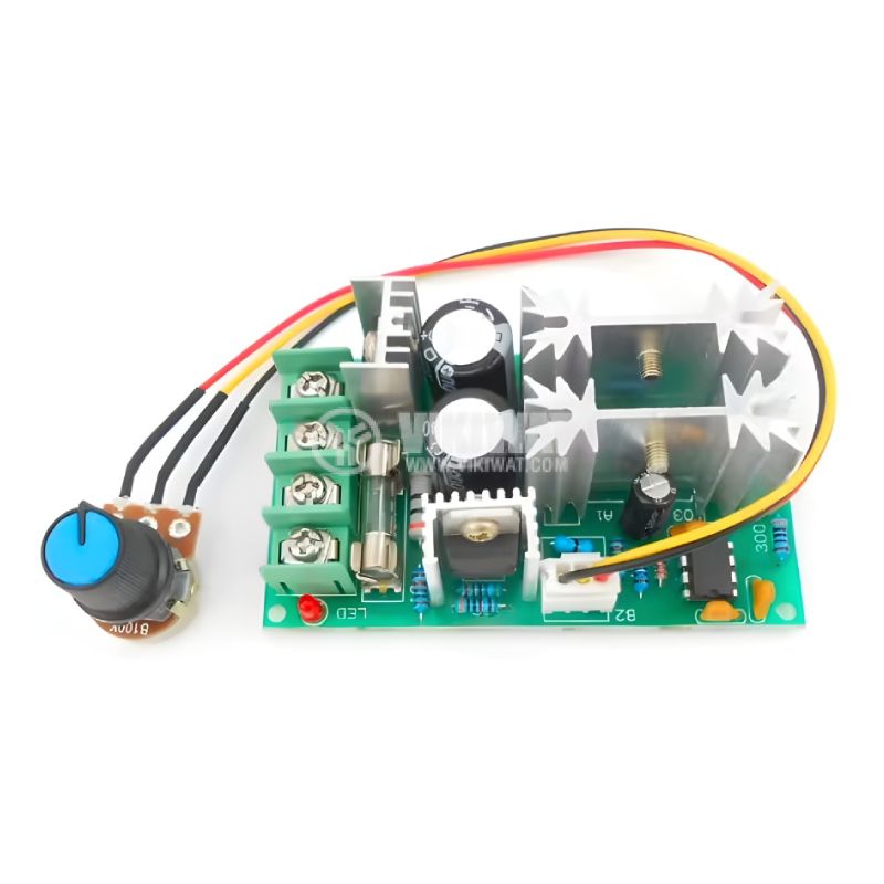 Контролера за постояннотоков мотор PWM DC Controler, може да регулира оборотите на постояннотоков (DC) мотор или силата на светене на светодиоди. Изходно напрежение от 12 до 48 VDC и максимален ток до 18 A.