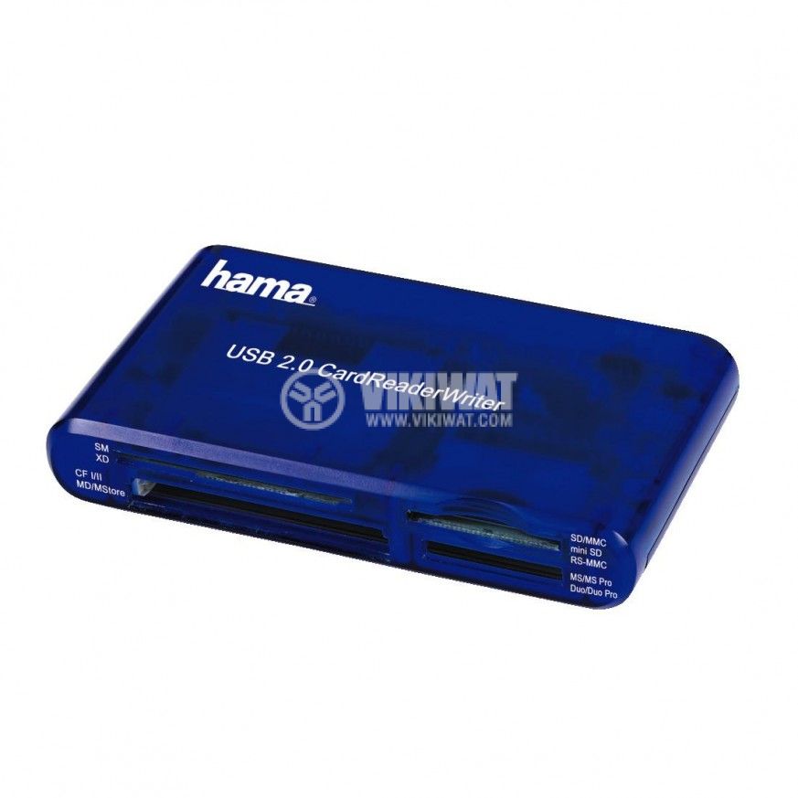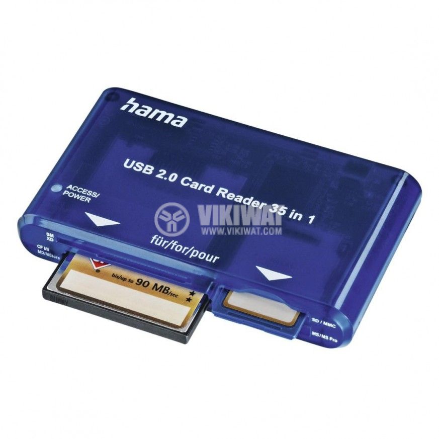 Универсален компактен USB 3.0 четец от Hama, за SD/MicroSD карти, за четене от карта и запис на карта, захранвени през USB.