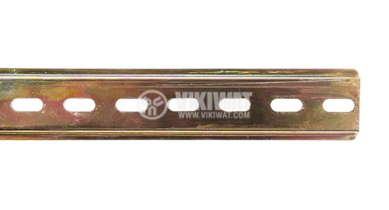 Galvanized, perforated Eurorail from VEMARK with a length of 0.5 m and dimensions of 3.5x7.5x1.2 mm, intended for installation in boxes, electrical panels, as a base for mounting circuit breakers, timers, electricity meters, relays, and other devices.