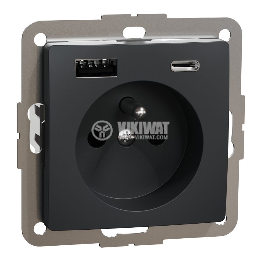 Electrical socket - Schuko French, in anthracite color, for installation, from the Sedna series by Schneider Еlectric - SDD114072. The new clean design of the Sedna series is suitable for residential, commercial and office buildings.