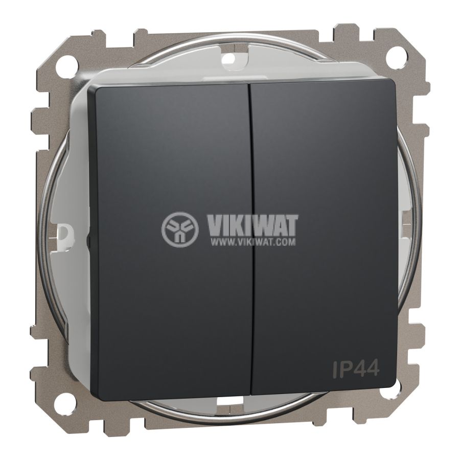 Electric switch - (serial) double, in anthracite color, intended for recessed installation, from the Sedna series by Schneider Еlectric - SDD214105. The new clean design of the Sedna series is suitable for residential, commercial and office buildings.