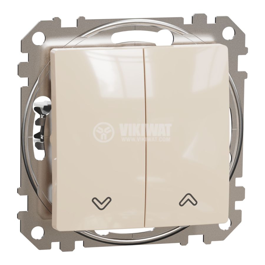 Електрически ключ - бутон за ролетни щори, в цвят бежов, предназначен за вграждане, от серия Sedna на Schneider Еlectric - SDD112114. Новият изчистен дизайн от серия Sedna е подходящ за жилищни, търговски и офис сгради.