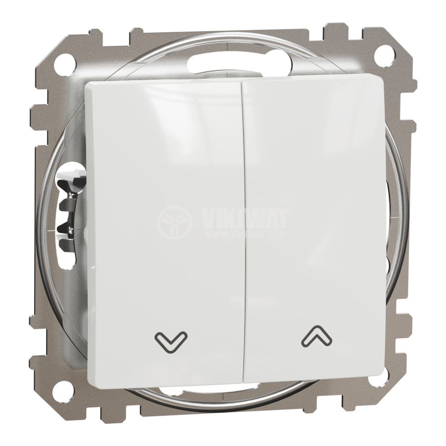 Електрически ключ - бутон за ролетни щори, в цвят бял, предназначен за вграждане, от серия Sedna на Schneider Еlectric - SDD111114. Новият изчистен дизайн от серия Sedna е подходящ за жилищни, търговски и офис сгради.