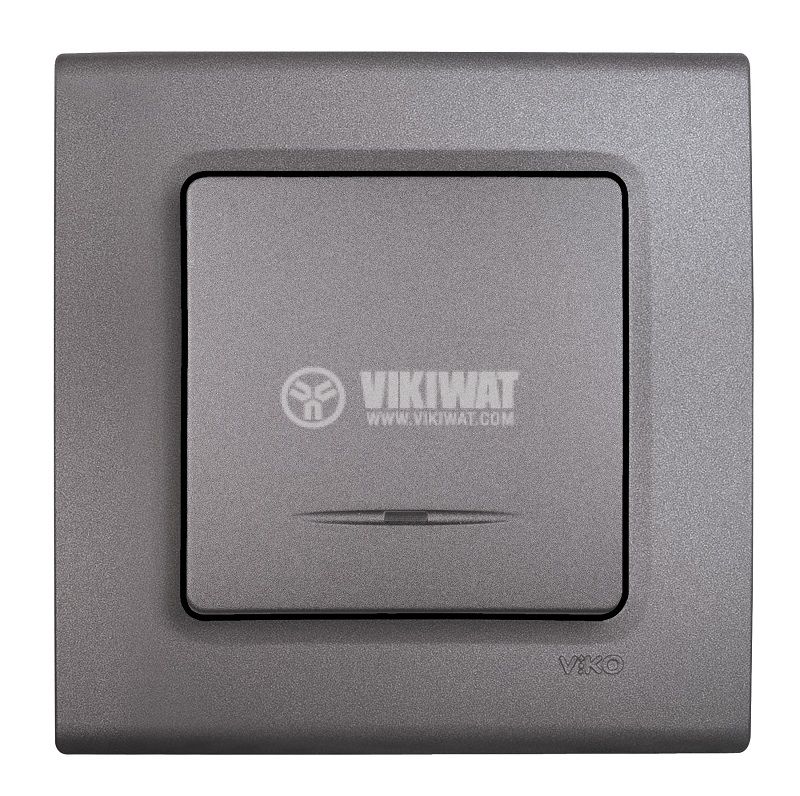 Електрически ключ светещ, в сив цвят, предназначен за вграждане, от серия Linnera life на Viko by Panasonic (90402019-BG). Новият изчистен дизайн в сив цвят е подходящ за жилищни, търговски и офис сгради.