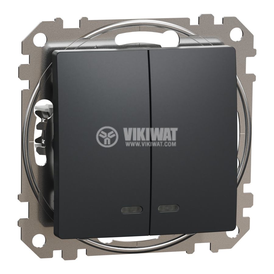 Електрически ключ - сх.5 (сериен) двоен, в цвят антрацит, предназначен за вграждане, от серия Sedna на Schneider Еlectric - SDD114105L. Новият изчистен дизайн от серия Sedna е подходящ за жилищни, търговски и офис сгради.