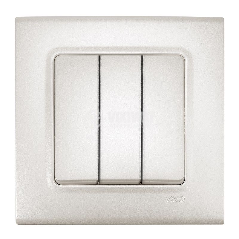 Електрически ключ троен, в цвят перла, предназначен за вграждане, от серия Linnera life на Viko by Panasonic (90403068-BG). Новият изчистен дизайн в перлено бял цвят е подходящ за жилищни, търговски и офис сгради.