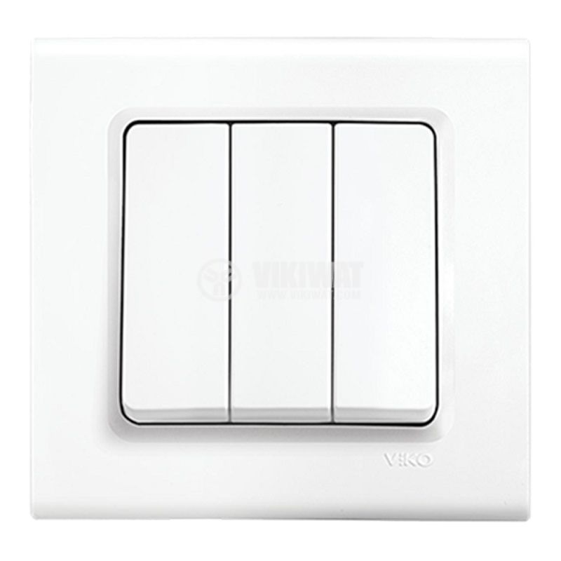Електрически ключ троен, в бял цвят, предназначен за вграждане, от серия Linnera S на Viko Panasonic (91400068). Новият изчистен дизайн в бял цвят е подходящ за жилищни, търговски и офис сгради.