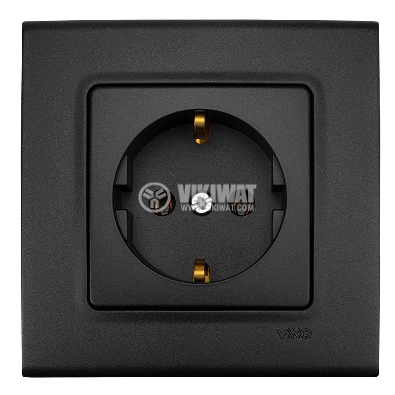Електрически контакт единичен, в черен цвят, предназначен за вграждане, от серия Linnera life на Viko by Panasonic (90404008-BG). Новият изчистен дизайн в черен цвят е подходящ за жилищни, търговски и офис сгради.