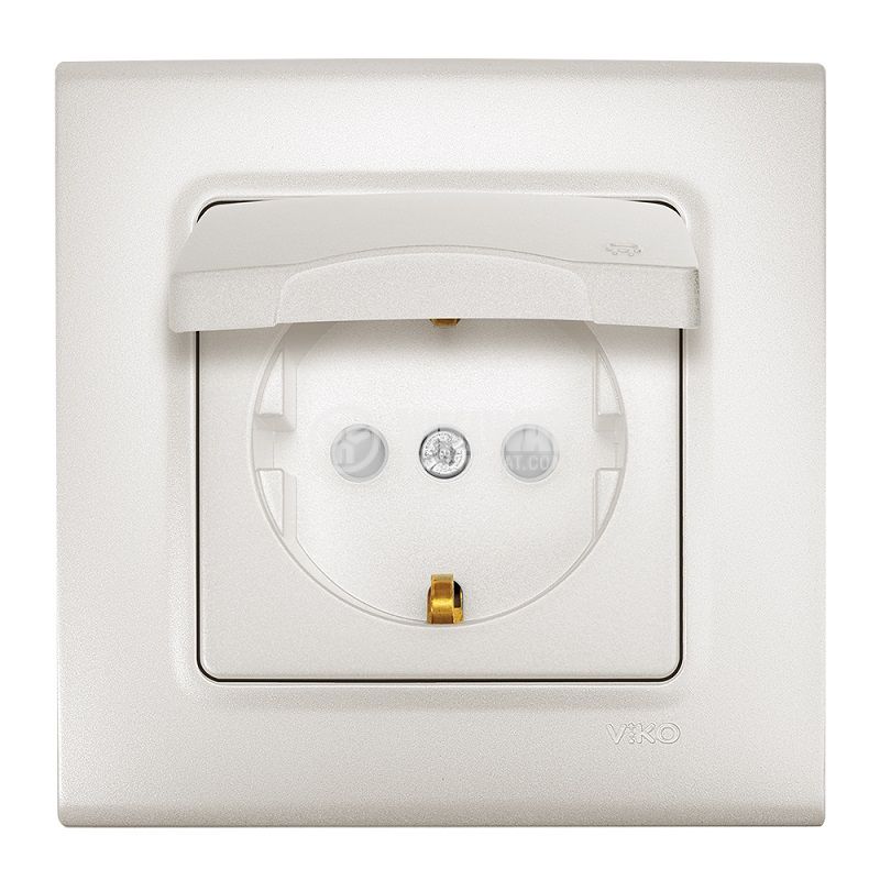 Електрически контакт с капак, в цвят перла, предназначен за вграждане, от серия Linnera life на Viko by Panasonic (90403012-BG). Новият изчистен дизайн в перлено бял цвят е подходящ за жилищни, търговски и офис сгради.
