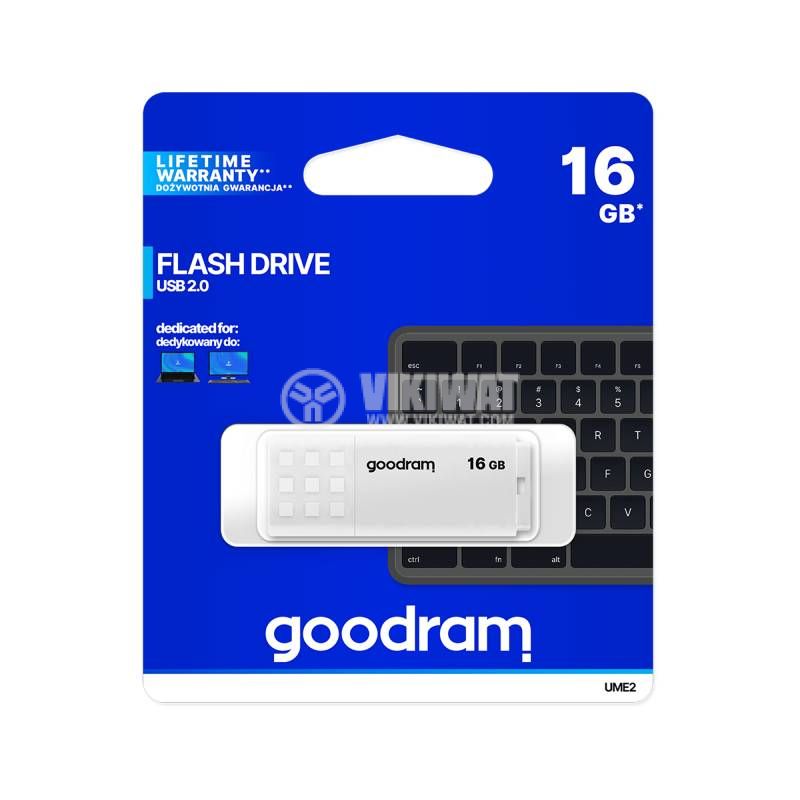 Преносима флаш памет от GOODRAM, с капацитет 16 GB, протокол USB 2.0, компактен размер за лесно пренасяне и споделяне на информация.