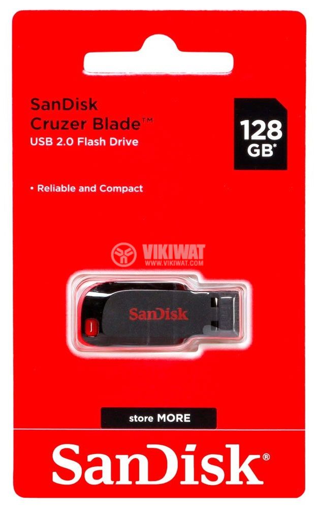 Компактна, елегантна USB флашка от SanDisk, с капацитет 128 GB, USB 2.0 протокол, компактен размер за лесно пренасяне и споделяне на информация.