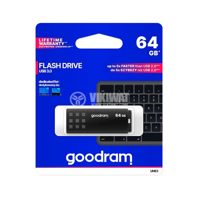 Компактна, елегантна USB флашка от GoodRam, с капацитет 64 GB, USB 3.0 протокол, компактен размер за лесно пренасяне и споделяне на информация.
