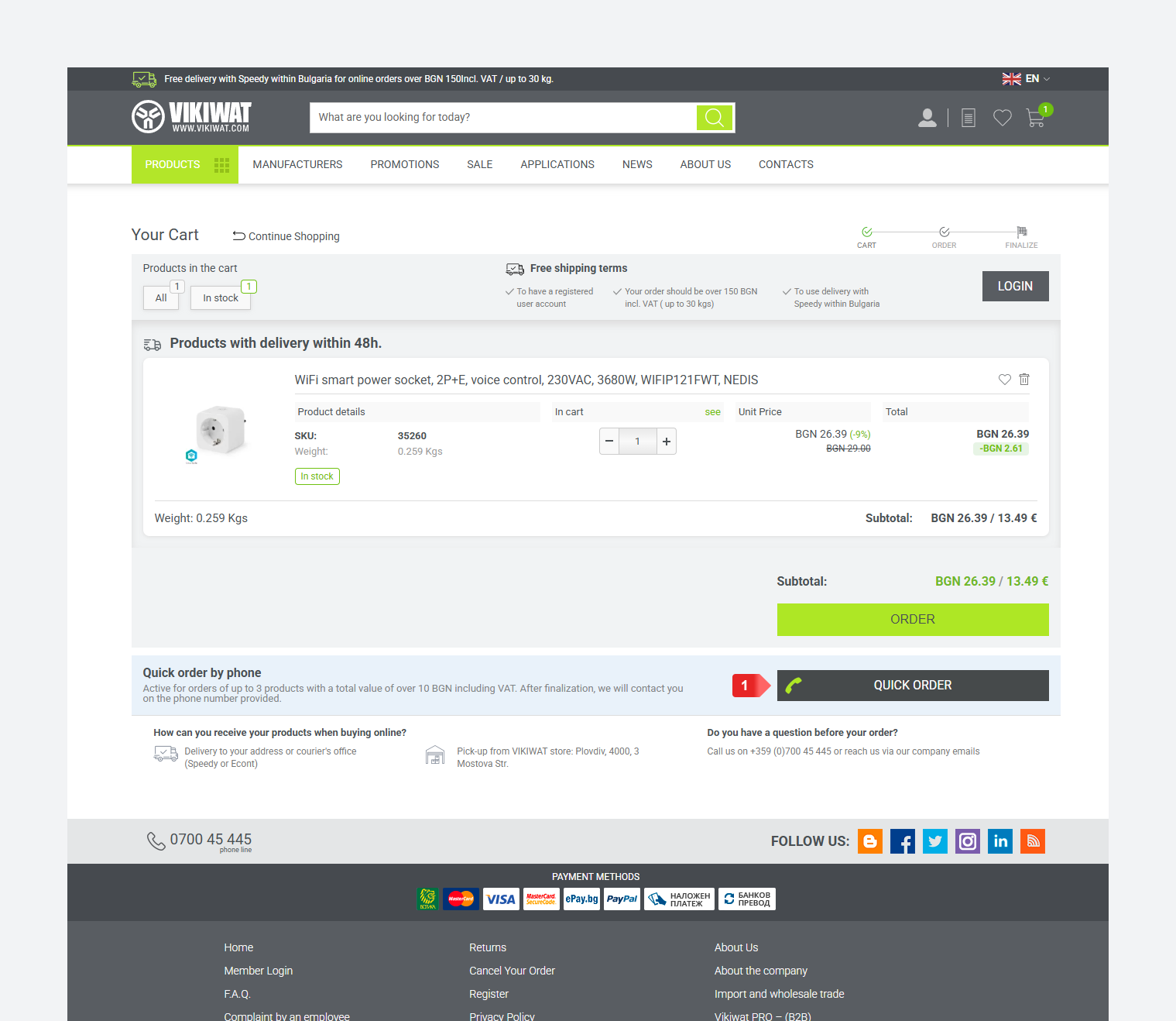2. The total amount of products in the shopping cart must be over 10 BGN. Orders with a total value less than 10 BGN, can be placed with a registered account only.