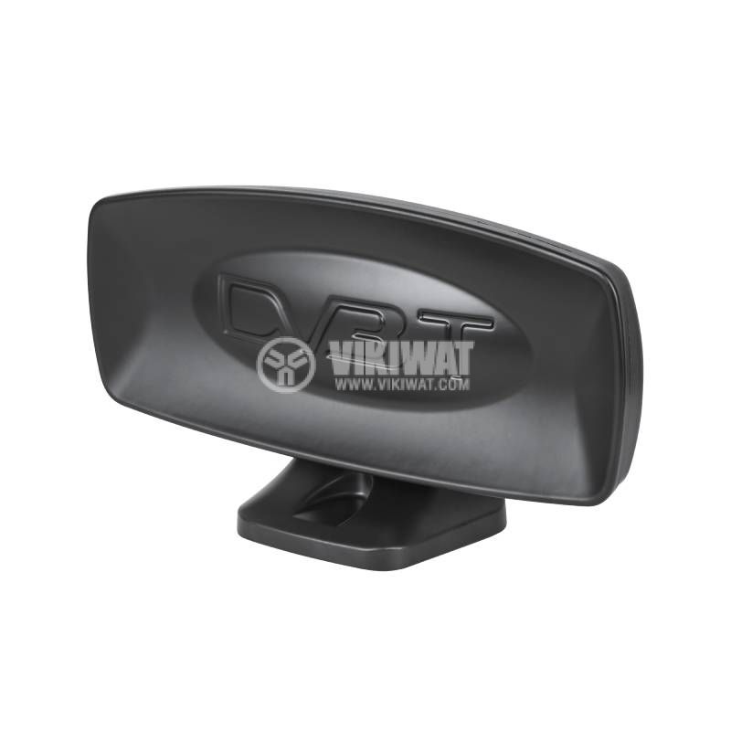 Digital terrestrial antenna ANT0513-A with application DVB-T/T2. Compact and suitable for indoor use. Black color.
