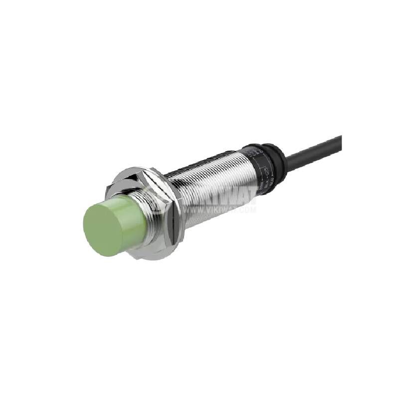 Индуктивен сензор PRL18-8AO с метален корпус М18x80 mm тип двупроводен с един нормално отворен контакт, неекраниран, номинално разстояние на сработване от 0 до 8 mm и кабел с дължина 2 m.