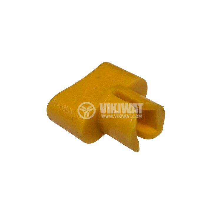 Yellow knob for isostat with square mounting hole measuring 3.8 x 3.8mm.