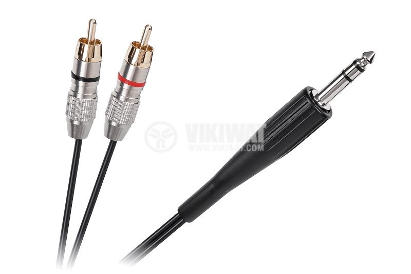 Преходен кабел с накрайници от 2 x RCA/m към 6.3mm/m stereo за всякакъв вид AV и Hi-Fi оборудване и компоненти, с дължина 1.8 m.