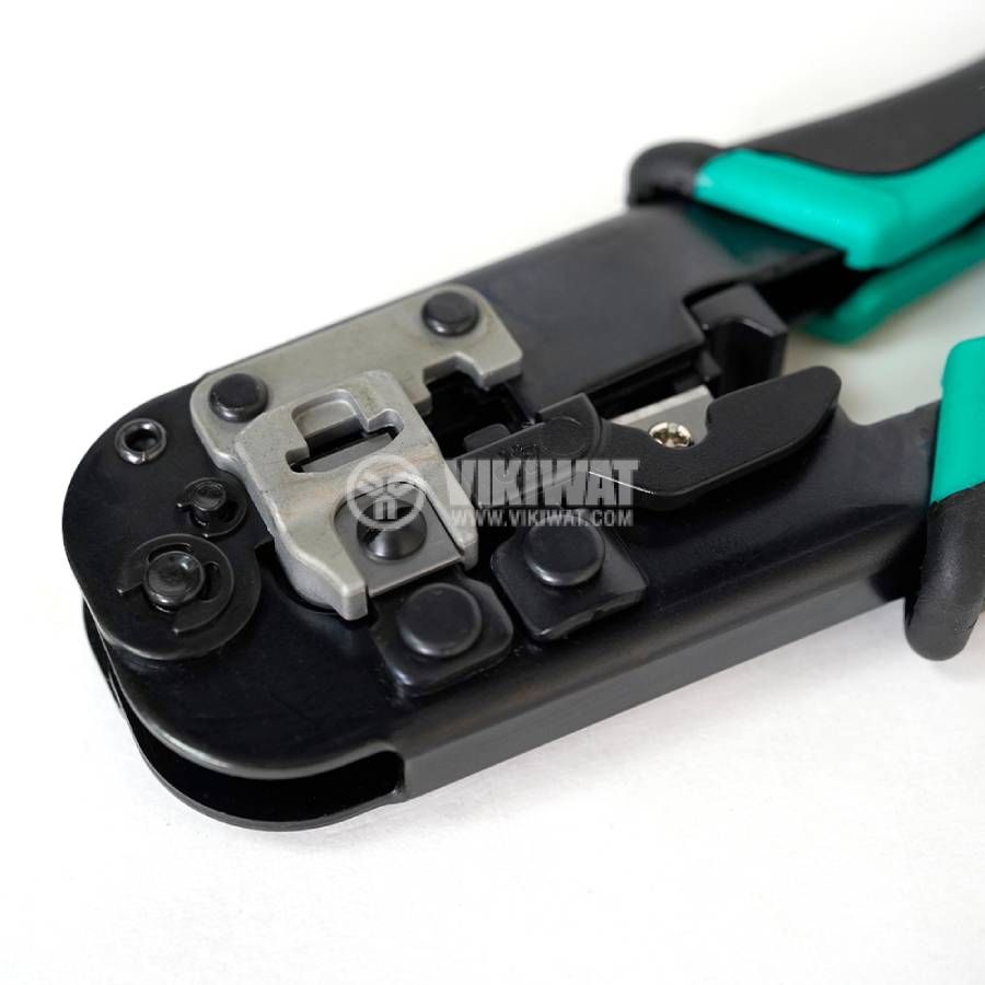 Професионални клещи CP-376TN от PRO'S KIT, с дължина 190 mm, 3 в 1, предназначен за рязане и заголване на мрежови и телефонни кабели и кримпване на RJ45 букси cat. 5,6 и 7, както и RJ12.