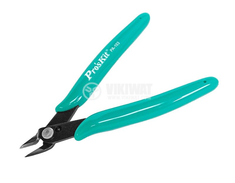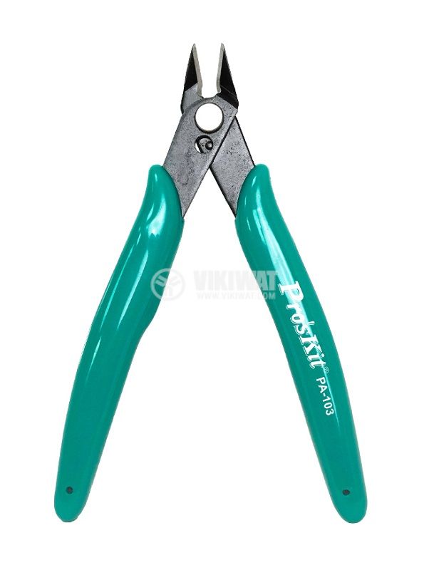 Клещи за рязане на кабели и проводници PA-103 от PRO'S KIT с дължина 125 mm. Предназначени за монтажни и ремонтни дейности в областта на електрониката и електротехниката. Подходящи за любителско и професионално приложение.