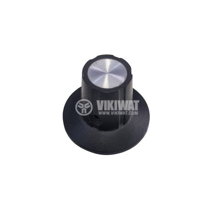 Knob with flange, size ф22x17 mm, hole diameter 6 mm and screw fastening.