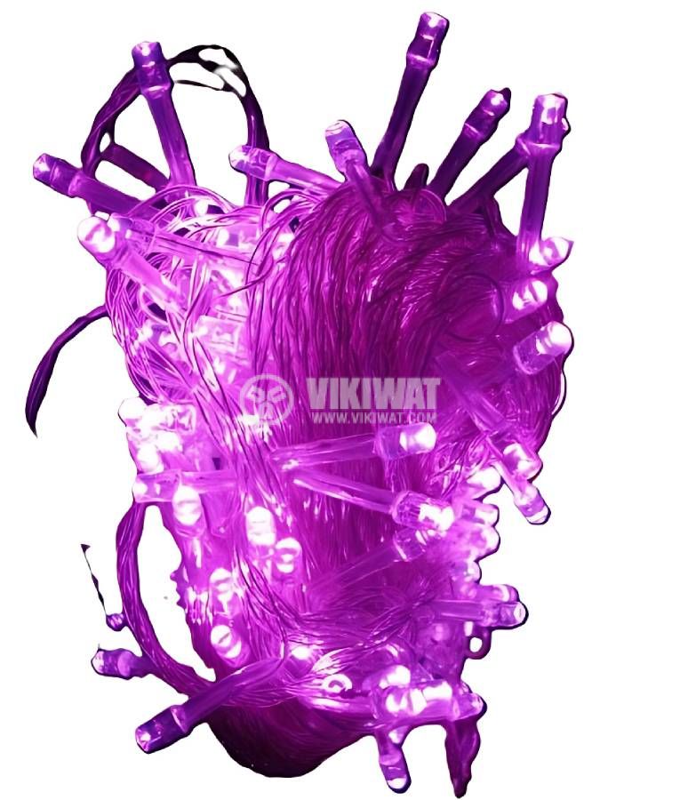 Светлинна коледна, новогодишна и празнична украса, тип въже, с дължина 10 m, с LED светодиоди, светещи в розов цвят,. с общ брой на светодиодите 100 LEDs.