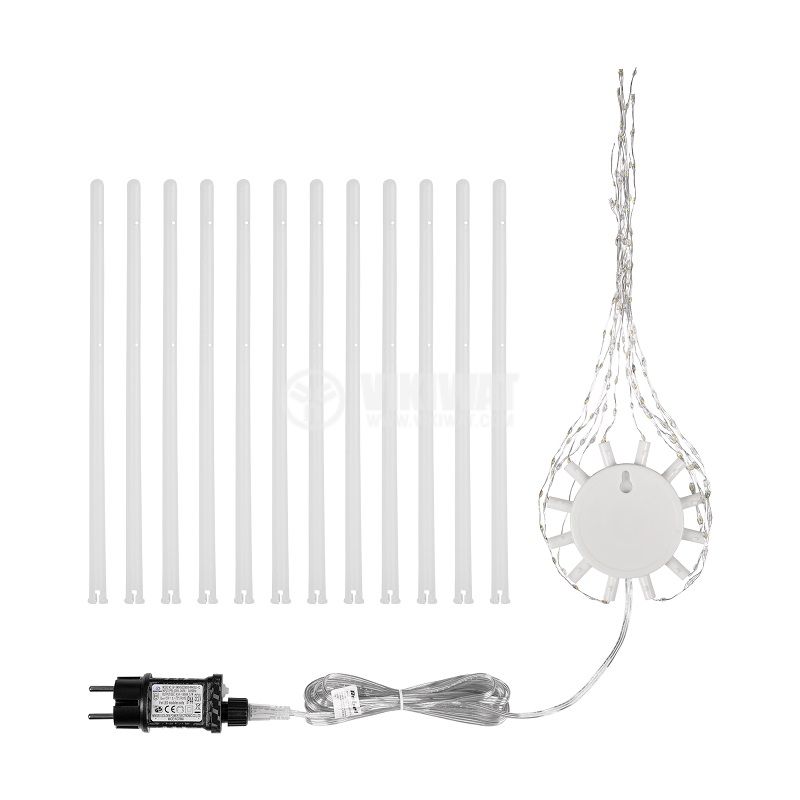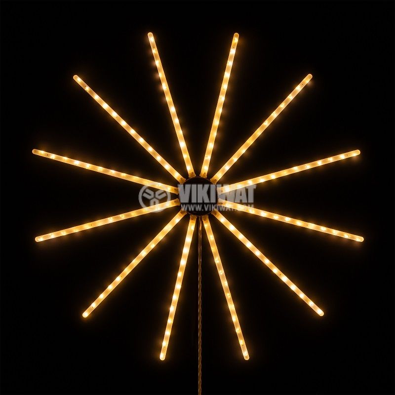 Коледна украса, с формата на звезда в топло бяла светлина. Захранващо напрежение 220 VAC и 14 режима на светене.