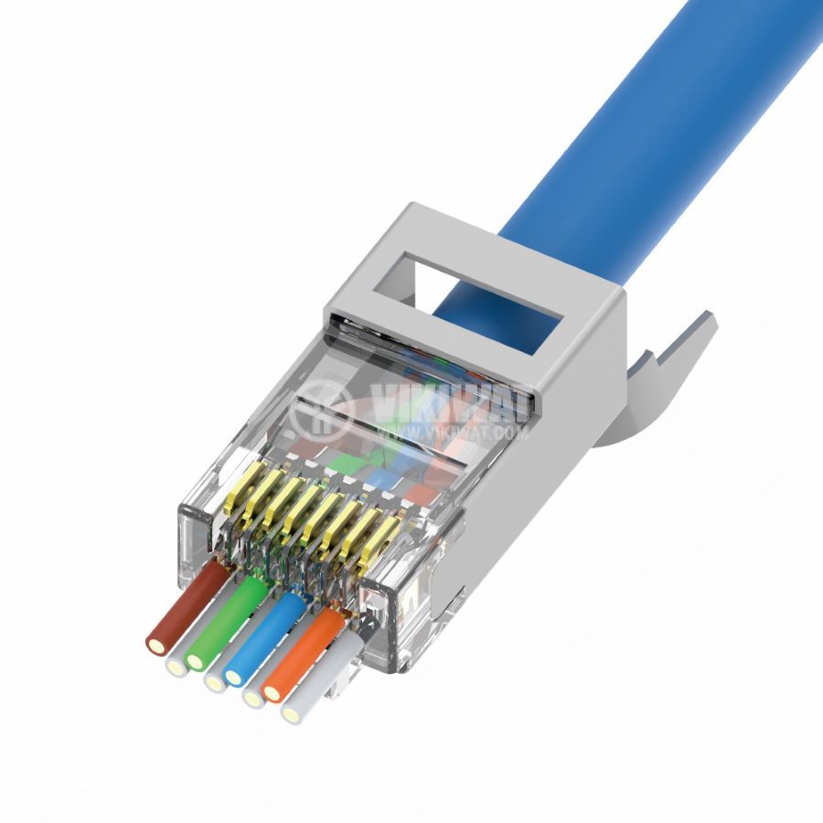 Конектор (щепсел) CN-PT50C6AS от PRO'S KIT, предназначен за LAN и интернет мрежи, тип RJ45 (8p8c) за кримпване с клещи, подходящ за UTP и FTP сигнални кабели.
