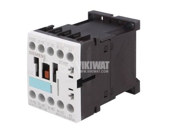 Четириполюсен контактор модел 3RT1016-1BB42-01 от SIEMENS с напрежение на бобината 24 VDC, работен ток на контактната система 20 A, конфигурация на контактите 3xNO+NC, номинално напрежение 600 VAC.
