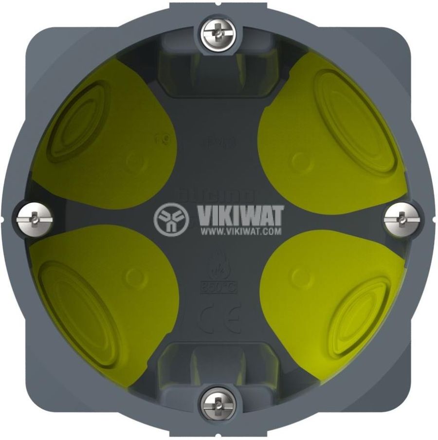 Единична конзолна кутия за вграждане в стени от гипсoкартон BTICINO PB502NN за 1 гнездо немски (европейски) стандарт или 2 модула италиански стандарт. Монтажна дълбочина 50 mm. Гумени мембрани. Диаметър на пробиване 67/68 mm.