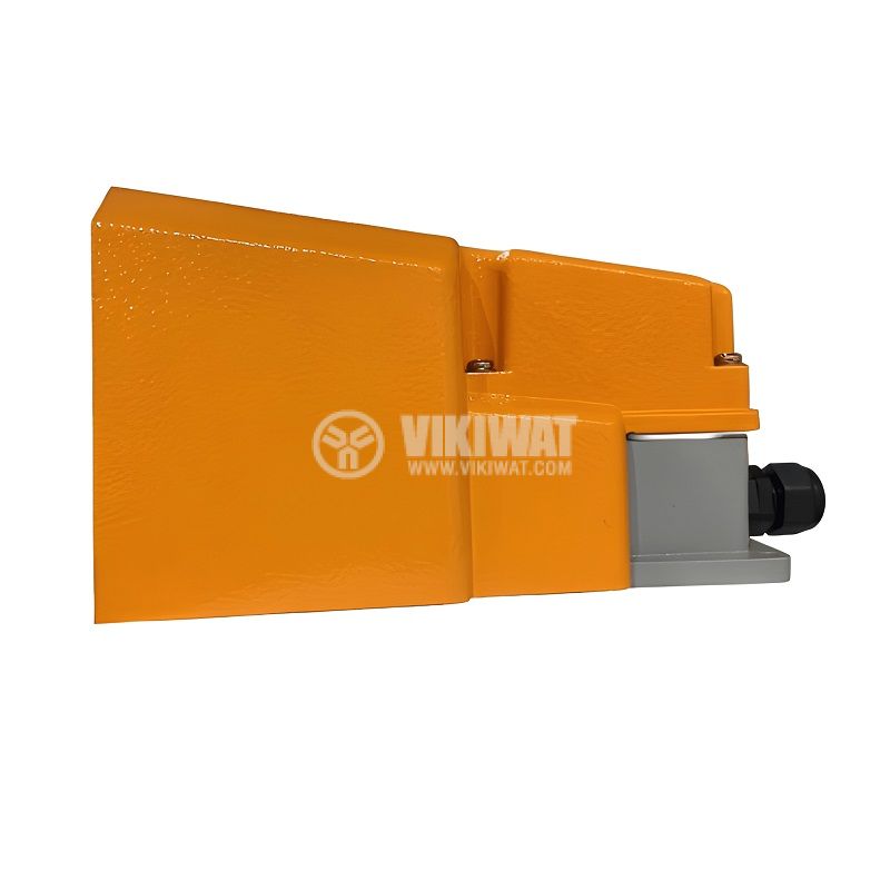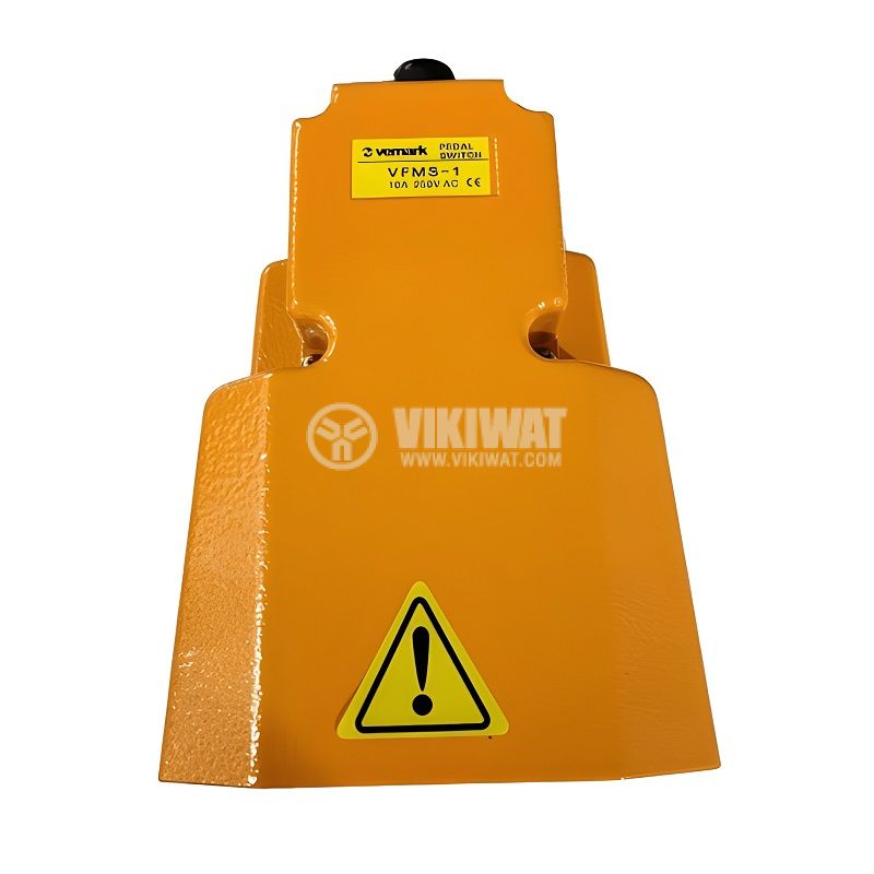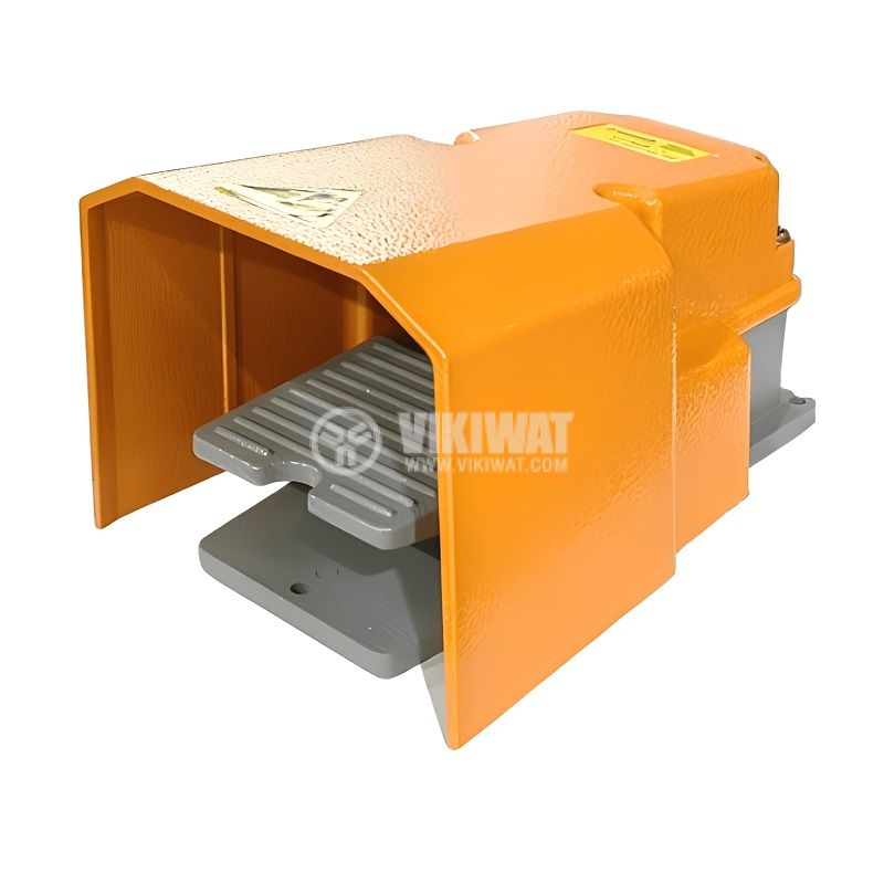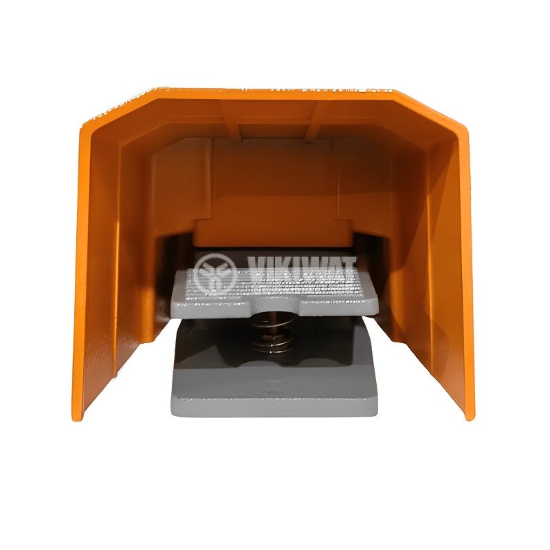 Метален крачен превключвател тип педал VFMS-1, номинално напрежение 250 VAC, максимален ток 10 A, контакта система SPDT с контакти NO+ NC и висока степен на защита IP65.