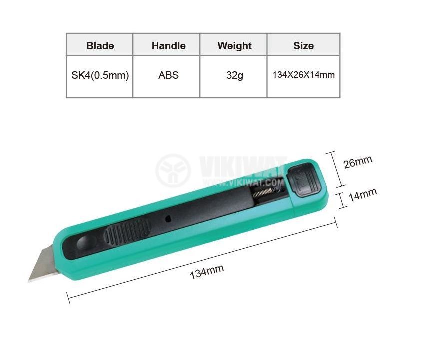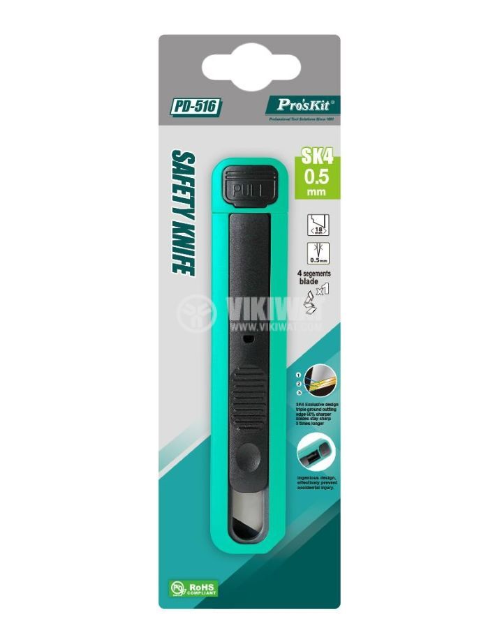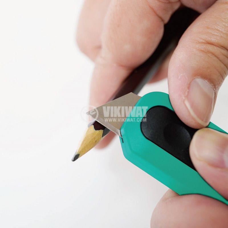 Макетен нож PD-516 от PRO'S KIT, с дължина 134 mm, стандартни резци от 18 mm, заключващ механизъм. Подходящ както за домашно така и за професионално приложение.