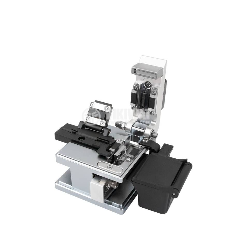 Механична машина FB-1618C от PRO'S KIT, специализирана за прецизно рязане на оптични кабели. Машината предлага разяне и оголване с ъгъл под 0.8°, волфрамово острие от висок клас предназначено за над 36 000 разреза, както и контейнер за отпадъци.