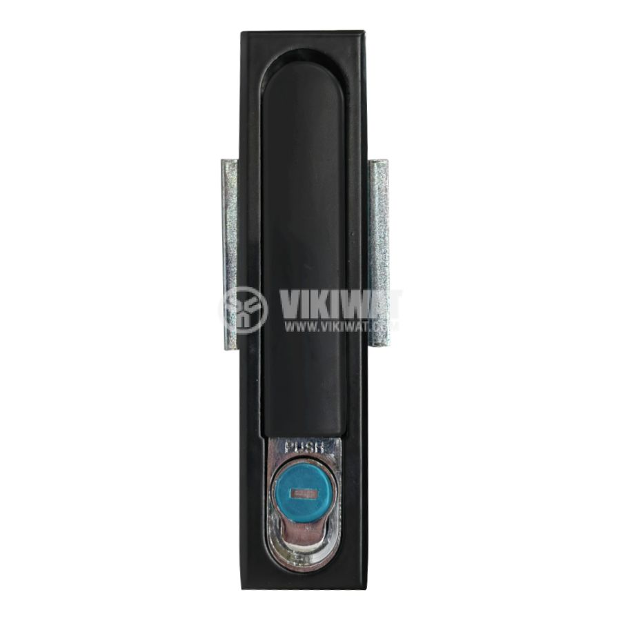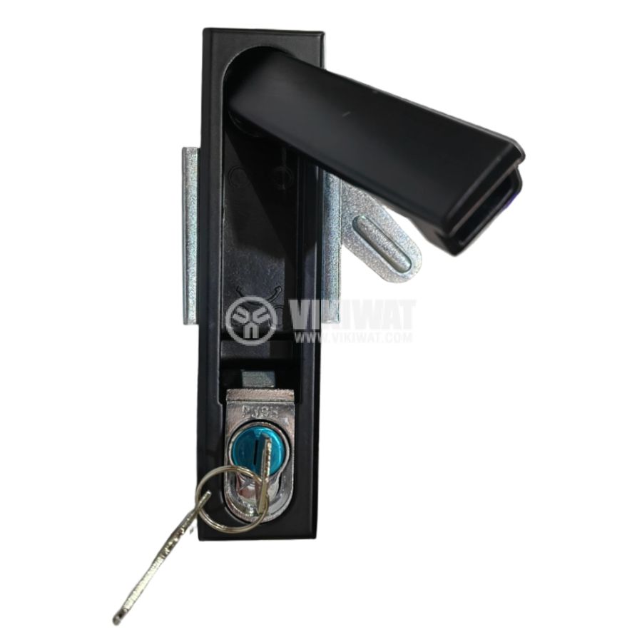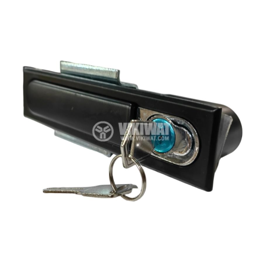 Ключалка - брава MS490-1 от VEMARK с два ключа, за електроразпределителни и комуникационни табла, метал / пластмана. Предназначена за монтажен отвор с размери 135 x 26 mm.