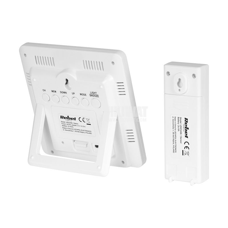 Метеостанцията от Rebel с термометър, барометър и хигрометър за измертване на вътрешни и външни показатели. Температура -10 ~ 50°C и -40 ~ 70°C. Разпоалга с функции за минимум и максимум, час, аларма.