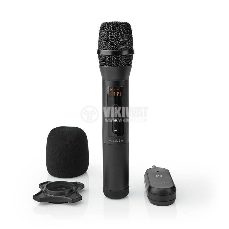 Безжичен микрофон MPWL200BK от Nedis има 20 канала и честота от 70 Hz до 13 kHz. Уникалният, малък и преносим предавател с 6.3 mm конектор прави този микрофон съвместим с широка гама от музикални системи и озвучително оборудване.