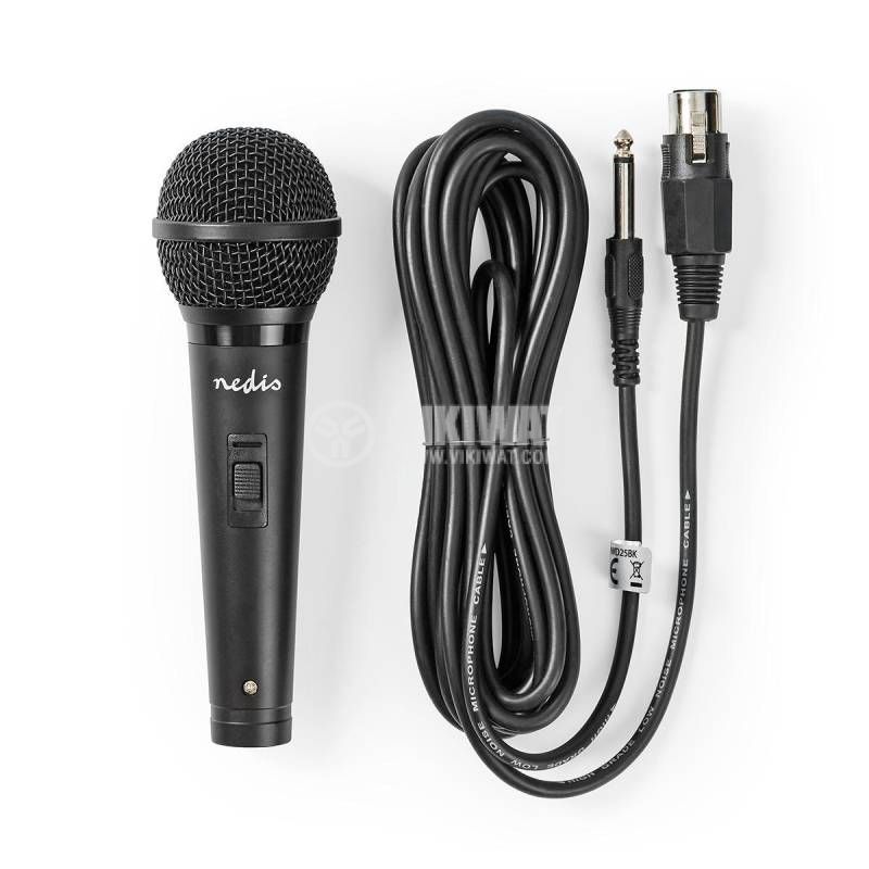 Микрофон MPWD25BK от Nedis, висококачествен, свързва се чрез XLR към 6.35 mm. Кабелът на микрофона е с дължина 2 m.