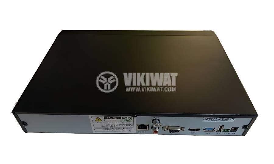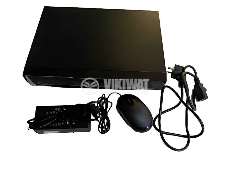 Мрежови видеорекордер (DVR), 16 канален, максимална резолюция 1920x1080pp, 2 канала звук, с портове RCA, VGA и USB, HDMI, поддържа до 2 TB SATA диск (не е включен в комплекта). Видеорекордер поддържа 3G мрежа, USB WiFi, може да стриймва от мобилен телефон. В комплекта има зарядно и USB компютърна мишка.