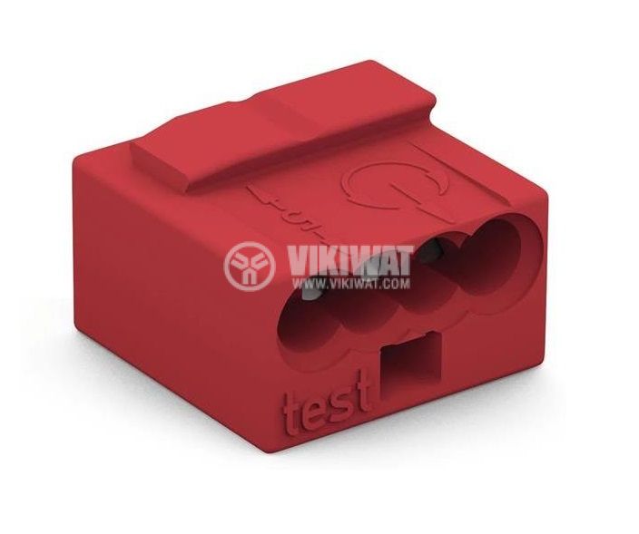 WAGO screwless terminal block (quick connection) for five solid, copper or aluminum conductors with a cross section from 0.75 to 4 mm2, load capacity 450 V / 32 A, dimensions 10x10x6.8 mm and orange color.