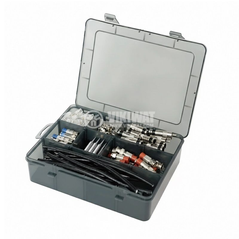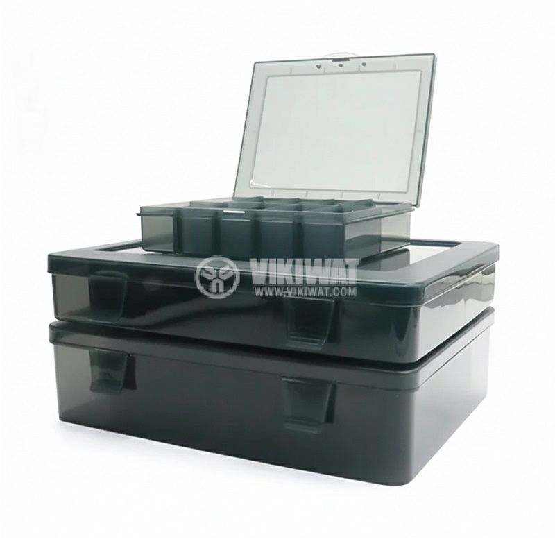 A practical organizer for storing tools, fasteners and small supplies, suitable for workshops, service stations and home use. With compact dimensions and a transparent lid, it provides quick access and good visibility of the contents.