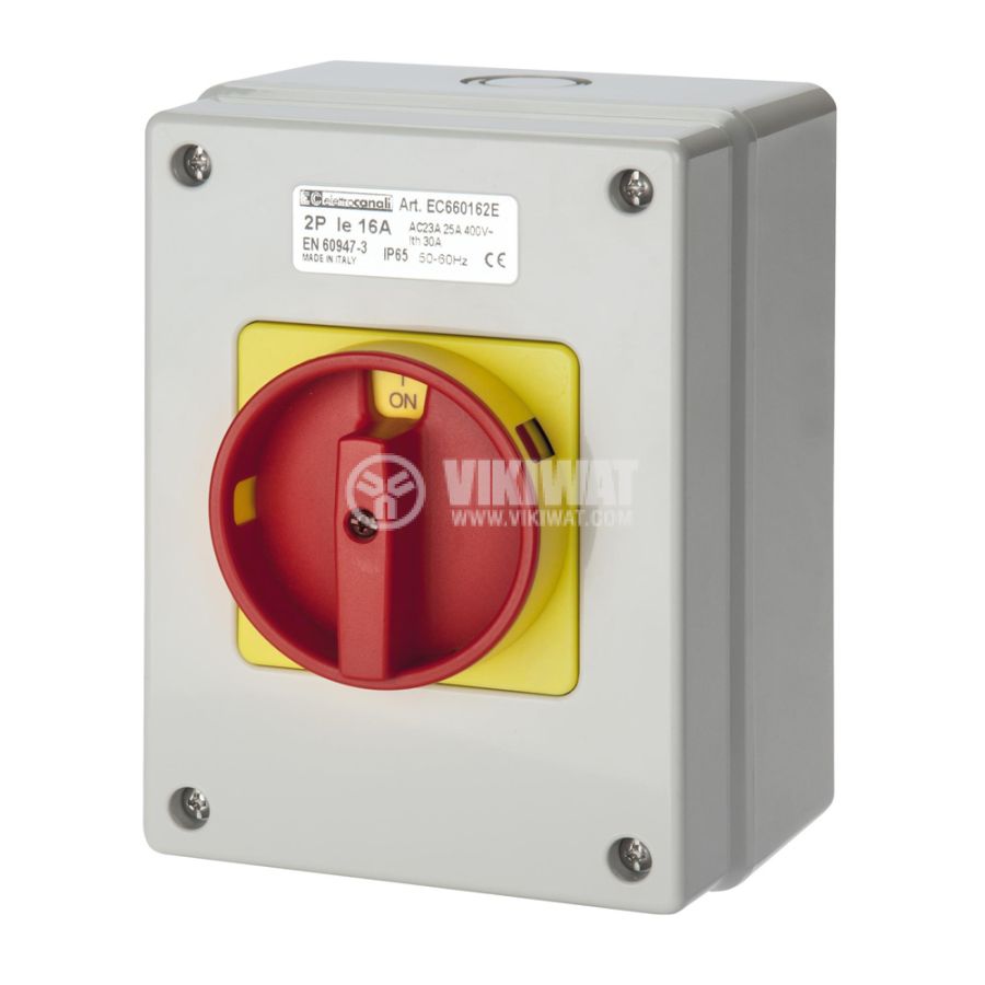 Пакетният електрически прекъсвач EC660632E от ELMARK се използва за превключване на една верига (L1) -монофазен консуматор . Tой е предназначен за включване и изключване на електрически вериги с номинален ток 63A / 690VAC.