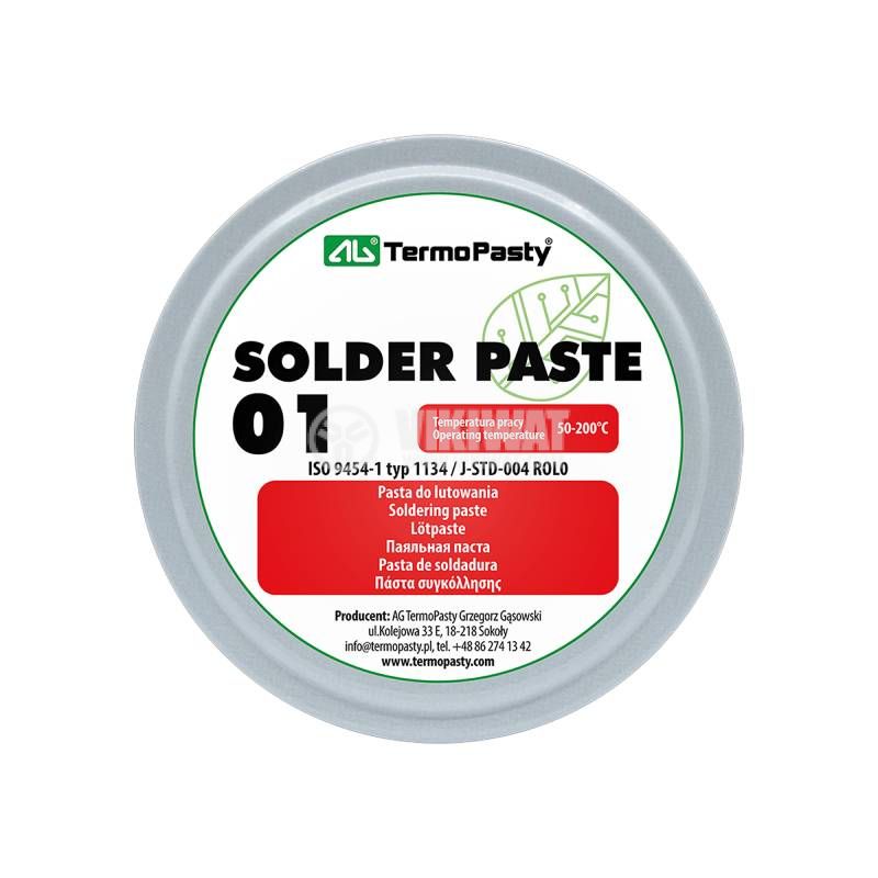 Пастообразен универсален флюс от AG TERMOPASTY по нова формула с изключително добри показатели. Подходящ за запояване с калаени припои на кабели и детайли от мед, медни сплави, желязо, железни и неръждаеми сплави, никел, цинк и др. Разфасовка 20 g.